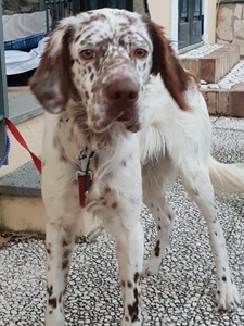 Eric, Setter Inglese maschio, bianco fegato, circa 2 anni.